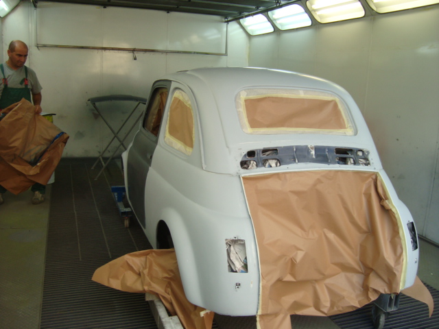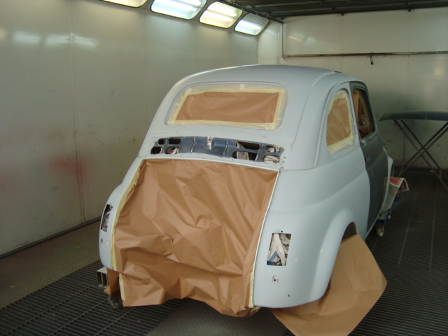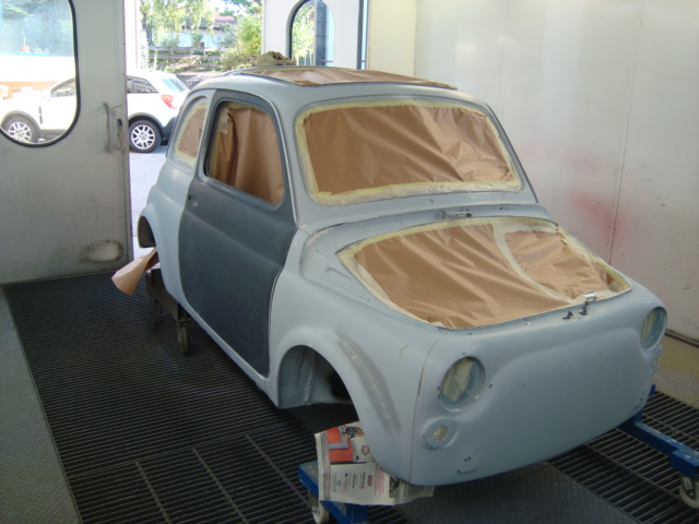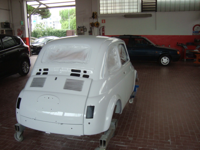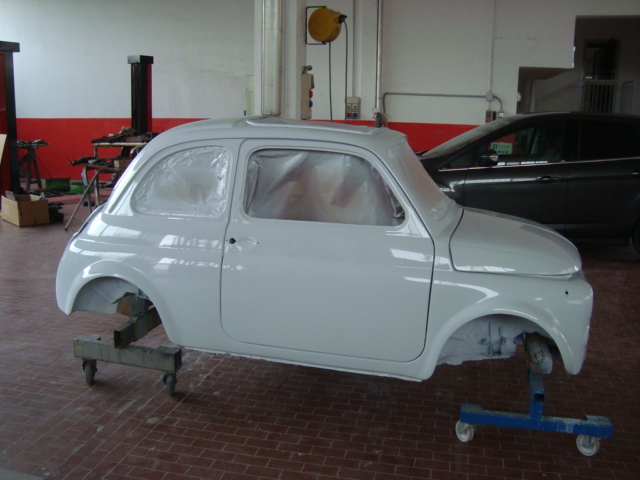 Eccoci all’opera durante il restauro di una Fiat 500 d’epoca